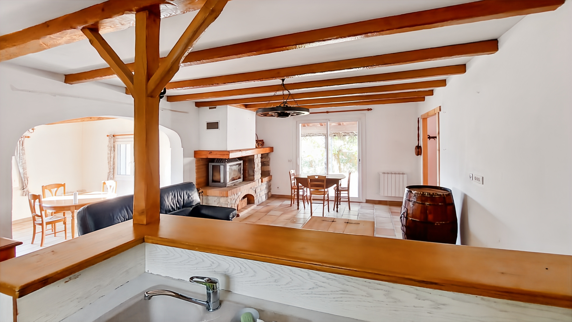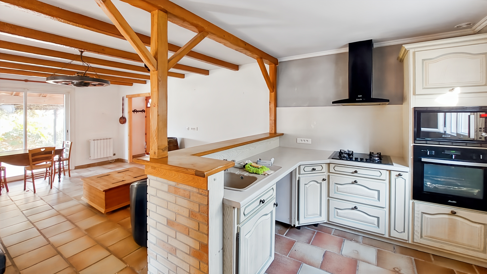En position dominante et en fond d'impasse, celle-ci se compose de la manière suivante : hall d'entrée, vaste séjour salon avec cuisine ouverte aménagée, 2 chambres de plain-pied ainsi qu'une chambre à l'étage, salle d'eau, wc indépendant, garage attenant, profonde terrasse avec vue dégagée, espace barbecue, dépendance avec possibilité de créer un studio.