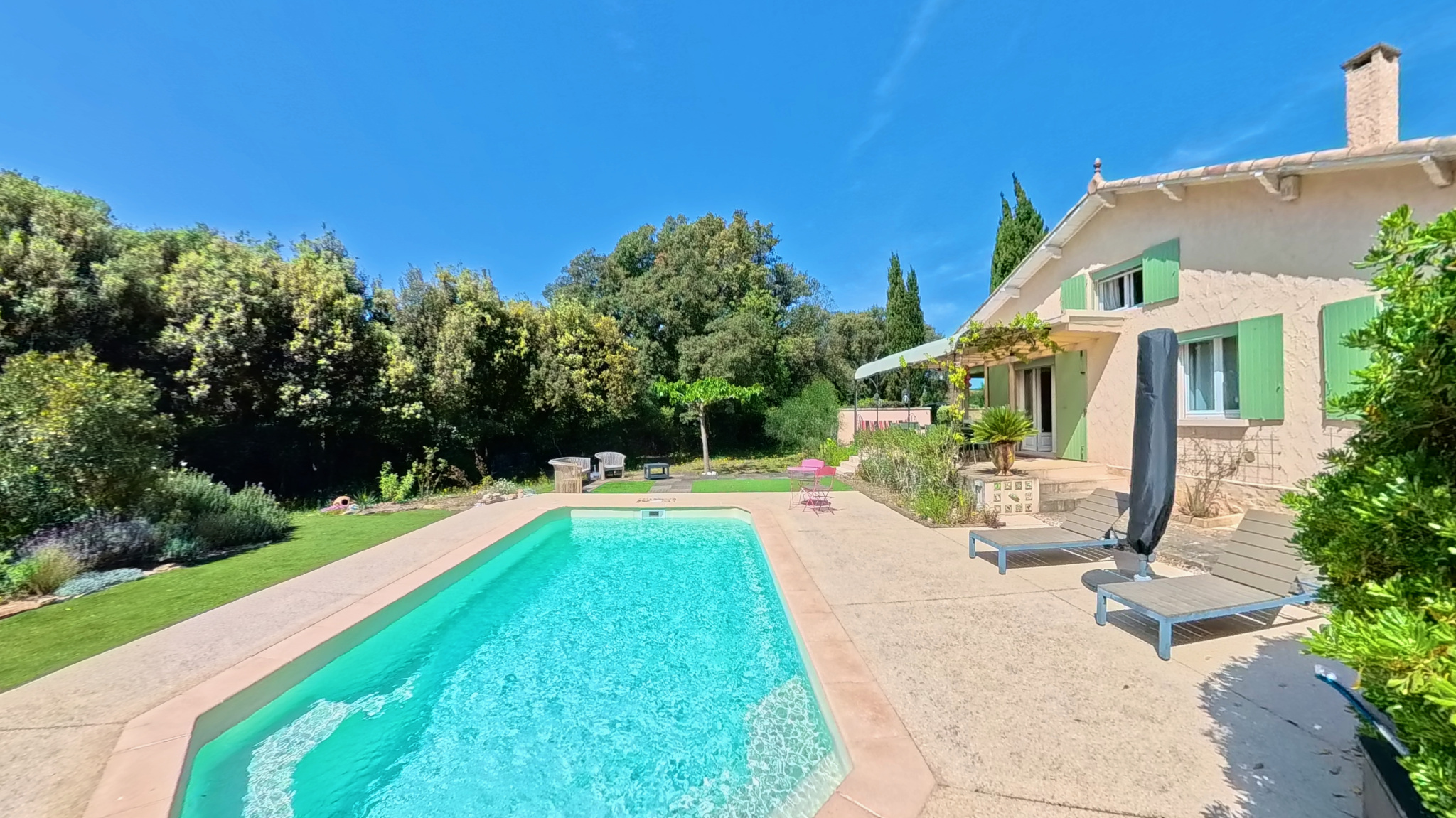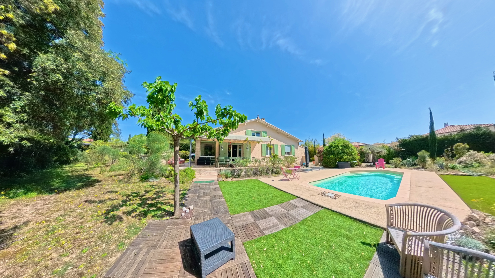 Belle villa au coeur d'un magnifique parc arboré de 1663 m2 avec piscine et carport pour 2 véhicules.