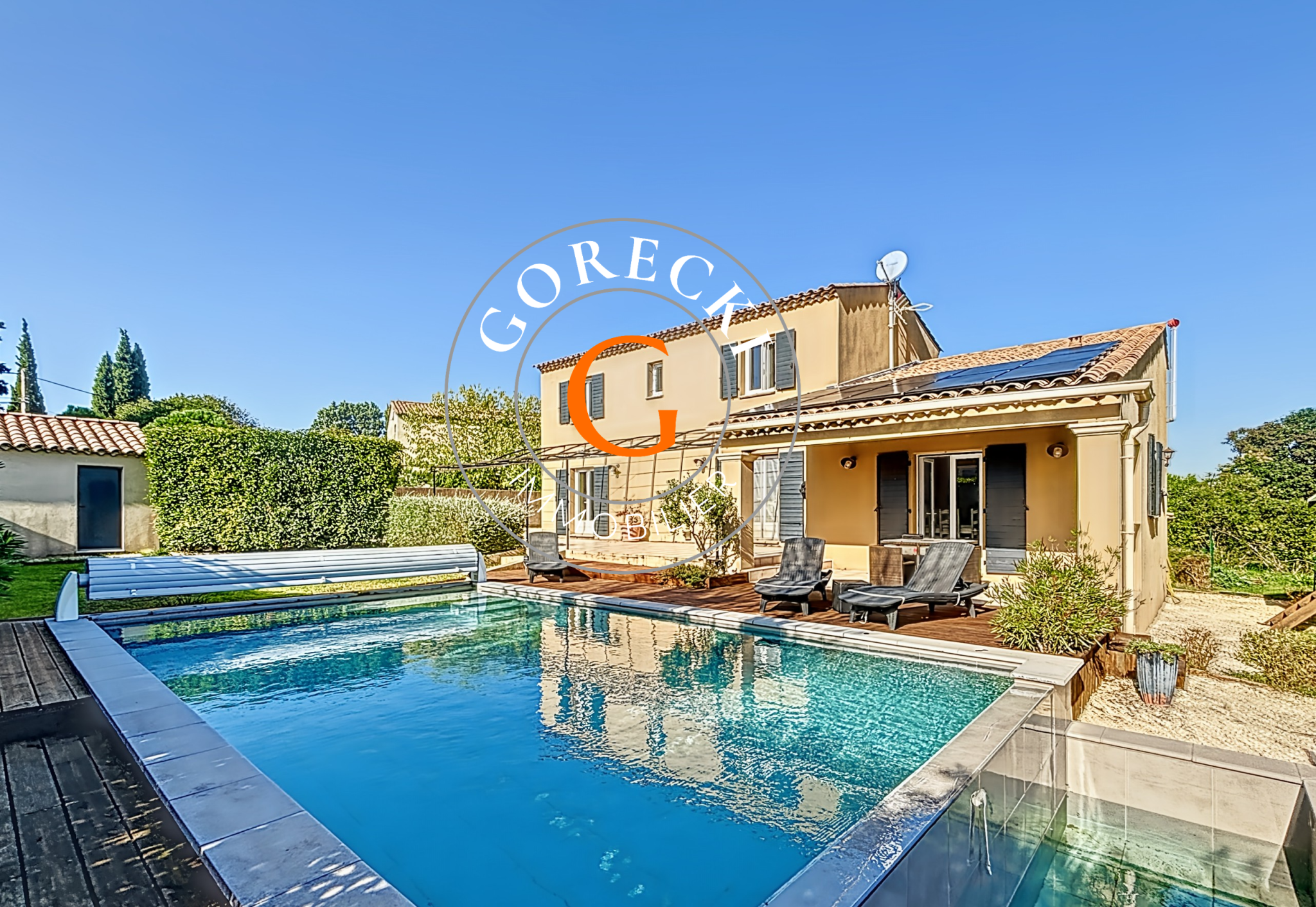 À seulement 4 km d’Uzès, dans un village dynamique avec commerces, découvrez cette superbe maison d’artisan esprit Bastide, construite en 2008, sur un terrain clos de 1120 m² en position dominante avec jolie vue et belle luminosité.