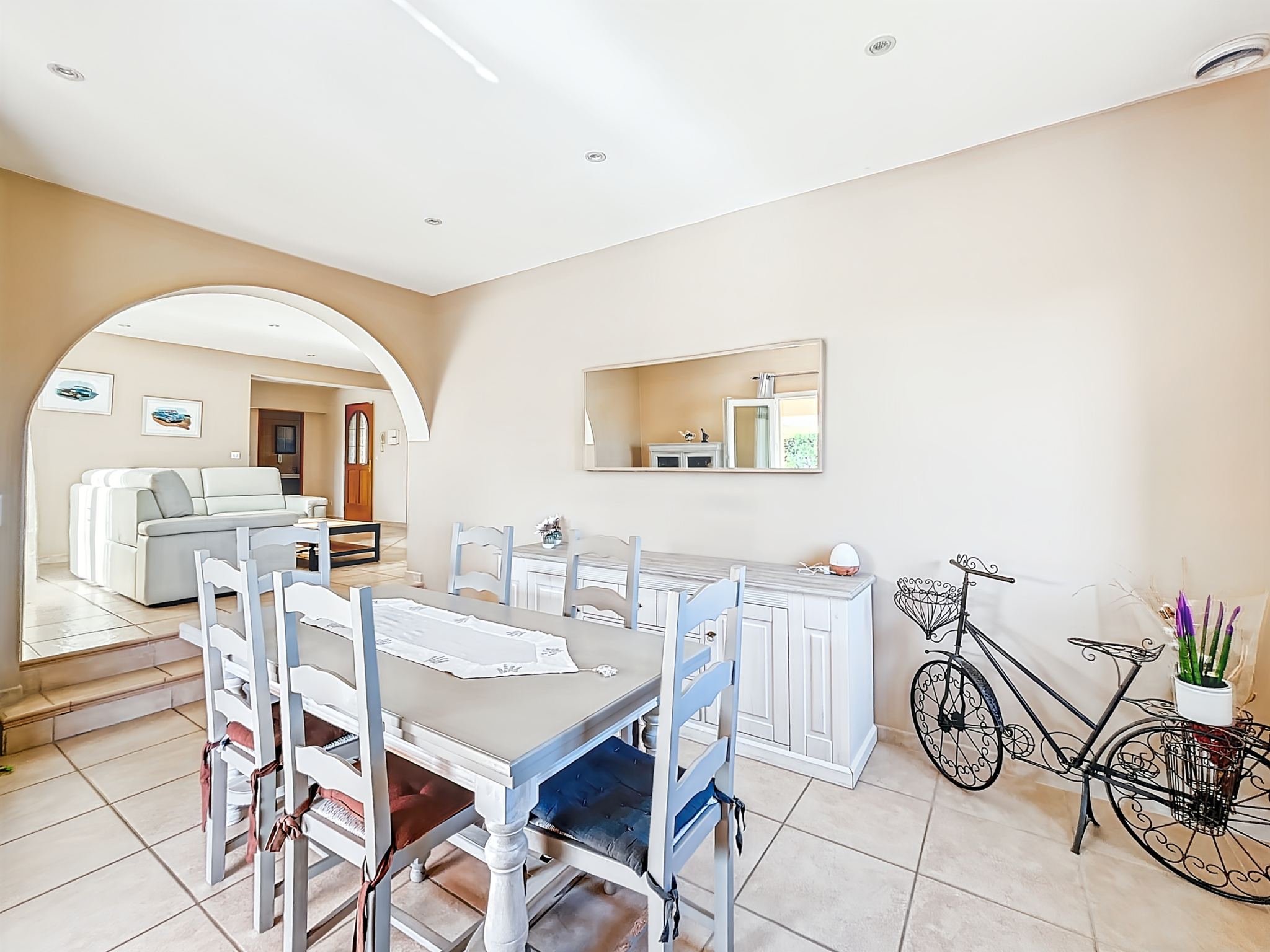 Au rez-de-chaussée, profitez d’un double séjour lumineux ouvrant sur une grande terrasse partiellement couverte, face à la piscine à débordement au sel, chauffée (10m x 5m). La cuisine dinatoire entièrement équipée dispose d’un cellier/buanderie attenant. Vous trouverez également un bureau et une suite parentale avec dressing et salle de bain complète (douche et baignoire).